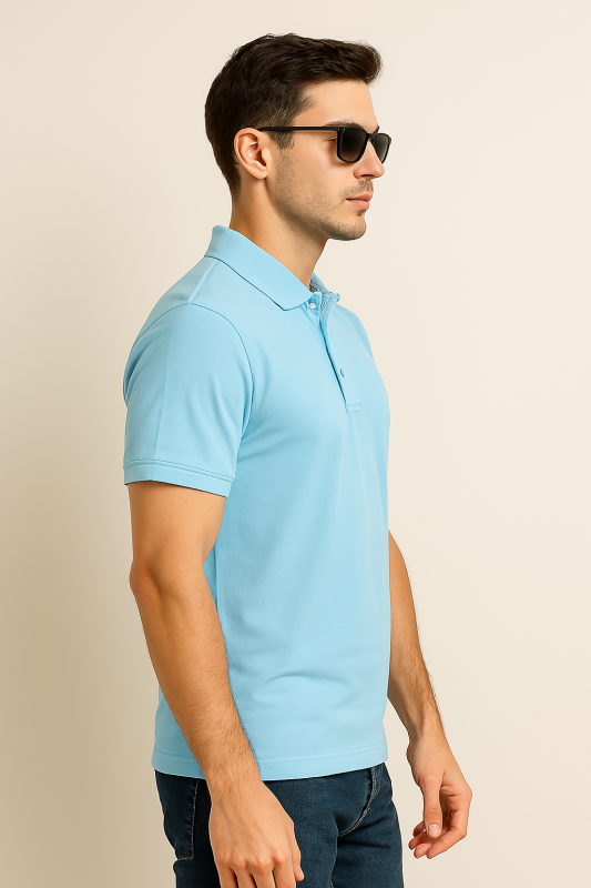 Elevate your everyday look with our Sky Blue Polo T-Shirt – a perfect blend of freshness and comfort. Crafted from a premium cotton blend, this polo shirt offers a breathable and soft feel, keeping you cool all day. The calm sky blue tone adds a touch of sophistication, making it ideal for both casual meetups and semi-formal outings. Designed with a clean collar, short sleeves, and a buttoned placket, it’s a wardrobe essential for every modern man.
