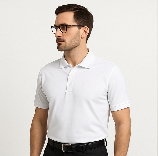 Refresh your wardrobe with our White Polo T-Shirt – a timeless piece that delivers effortless style and day-long comfort. Crafted from a premium cotton-blend fabric, this t-shirt offers a soft touch, breathable wear, and a tailored fit that suits every occasion. The crisp white color gives a clean, sharp look that pairs seamlessly with both formal pants and denim. Featuring a smart collar, three-button placket, and short sleeves, this shirt is a perfect choice for work, travel, or casual meetups.